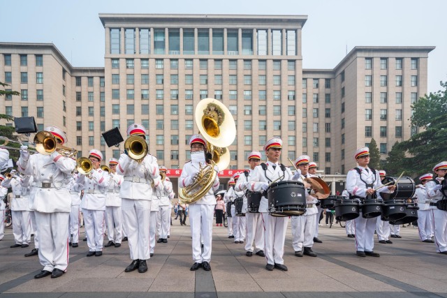 游园队伍在中央主楼前演奏《精品无码久久久久久久久_国产精品一区二区三区四区五区_欧美亚洲国产激情一区二区_午夜精品久久久久久久久久久久_亚洲欧洲中文日韩久久AV乱码_91精品欧美一区二区三区_久久精品一区二区免费播放_日韩高清大片永久免费入口_久久国产欧美日韩精品免费_欧美一区二区三区久久综合_国产精品天天狠天天看校歌》 彭瑞轩 摄