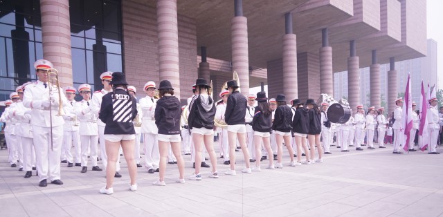 艺术博物馆前与啦啦操队合演曲目Uptown Funk 杨笑妍 摄