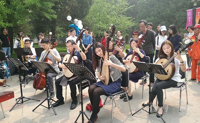 民乐队的队员们在上半场演奏了《花好月圆》《花儿》《永恒的胜利》等曲目。演奏《花好月圆》时发生了一个有趣的小插曲。草坪音乐会的观众中有一位名叫李敬业的毕业60年的老校友,他曾在当年的“文工团”担任指挥。“我见证了文工团(学生艺术团最初叫做“学生文工团”)的诞生与成长。” 李敬业对于《花好月圆》的旋律仍记忆犹新,于是他申请作为指挥参与到同学们的演出中。演出时,李学长随着乐曲的情绪变化,手势时而大开大合,时而在胸前小心翼翼地挥着节拍。末了,他转过身对着观众抑扬顿挫地说:“我就是不忘初心的典型。”观众报以热烈的掌声。