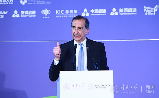 亚历山德罗·门迪尼作为特别嘉宾致辞。他表示,中意设计创新基地所在的门迪尼广场在19世纪末建造的时候,就是为当时创新企业和产业设计的。现在看到它又作为两国的创新基地,来自不同背景、不同种族、不同国家的人们在这里进行创新工作,感到十分欣慰。