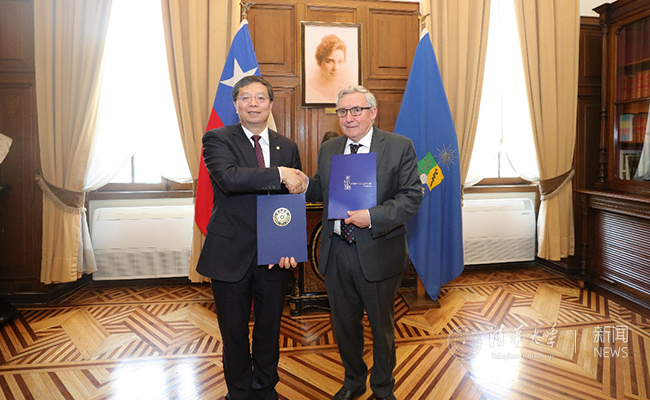 邱勇与智利大学校长埃尼奥·维瓦尔交换合作协议