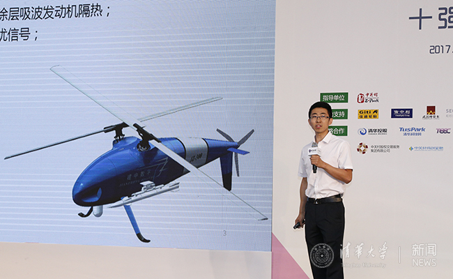 “建中数字” 团队展示无人武装直升机。记者 张宇 摄