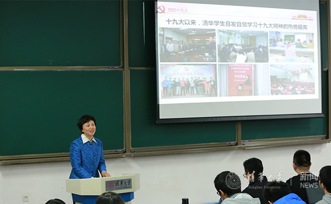 陈旭强调,习近平新时代中国特色社会主义思想是我们开启全面建设社会主义现代化强国新征程的思想指南和行动纲领。清华师生要深刻学习领会党的十九大报告,努力做到“三个把握”:把握好大会主题、把握好大会主要精神和历史贡献、把握好大会重要成果。陈旭强调,党的十九大报告中指出“中国共产党人的初心和使命,就是为中国人民谋幸福、为中华民族谋复兴”,并播放了总书记带领中共中央政治局常委专程赶赴上海和嘉兴瞻仰中共一大会址和南湖红船时的视频。陈旭希望在座的同学们都能认真思考一下自己的初心和使命,努力“成才报国”。