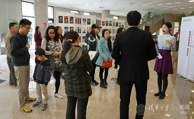 新清华学堂三楼观众厅学生引导员为剧场参观的观众讲解。王莉 摄