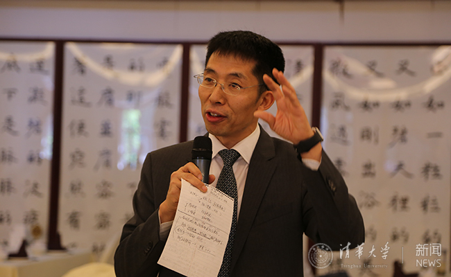 电机系主任曾嵘教授在电机系毕业50周年校友座谈会上向校友们介绍电机系的发展情况。陈淑玲