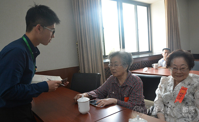 早晨9时20分,便有老学长早早到达会议厅,20分钟内,会议厅中就站满了白发苍苍的老学长学姐们,很多人都是从外省赶来,还有一些专程从香港、国外赶来,他们兴奋地询问着对方的近况,激动相拥,欢笑中听到一位学姐老校友动情地说道:“我们都已经60年没见了。”