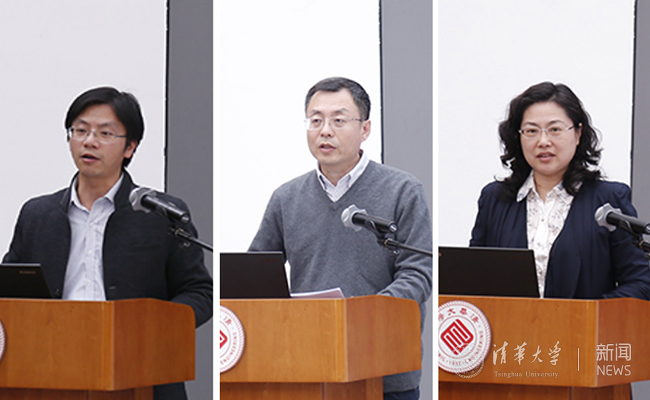 各单位书记作述职报告。(左起)化学系梁琼麟、金融学院顾良飞、热能系李宇红。记者 张宇 摄