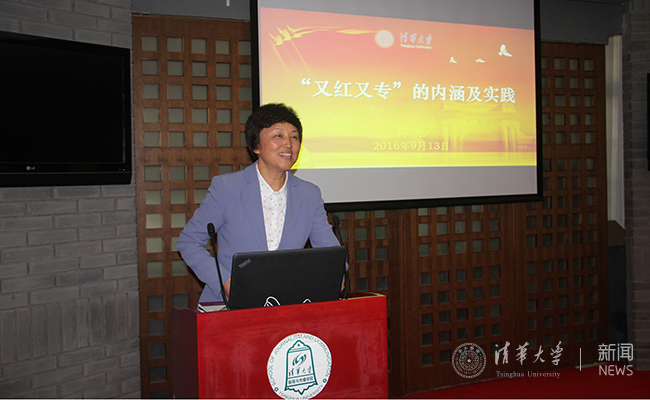 陈旭介绍了全校开展“两学一做”学习教育的整体情况,阐释了“又红又专”与“两学一做”的内在关系:“又红又专”是“四讲四有”的基础,“四讲四有”是“又红又专”的具体体现。陈旭还从历史维度解析了“又红又专”的内涵,这一理念承袭了毛泽东同志对社会主义人才培养的具体要求,由蒋南翔校长将其融入学校培养实践,形成了一套独具特色且行之有效的教育模式,为社会主义建设提供了一大批政治思想过硬、业务水平精湛的“红色工程师”。在清华,要做一名合格党员,不仅要“专”,还要有“红指导下的专”,这是高水平的“专”;不仅要自己“红”“专”,还要带动身边人也“红”“专”。