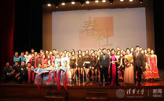 清华新闻网4月27日电 (通讯员 张育宸)4月22日晚,由校团委社团部以及12个艺术类社团共同举办的“春·社”学生社团校庆文艺晚会在蒙民伟音乐厅举行。四百余名师生、校友共同观看演出。晚会在一支动感十足的街舞《城市丛林》中拉开帷幕。