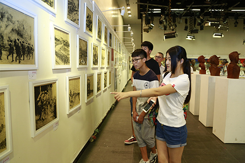 本届展览以纪念中国抗日战争胜利和反法西斯战争胜利七十周年为主题,通过绘画、雕塑、陶瓷、染织、摄影、书法、模型设计、工艺艺术、原创MV等多种艺术形式,集中展示了近700名清华学生在过去1个学期中学习思想政治理论课——《中国近现代史纲要》的学习成果。
