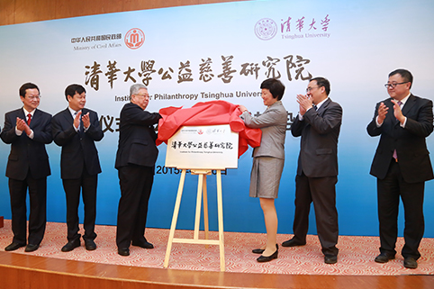 杜占元、邹铭、陈旭、谢维和、杨斌共同为公益慈善研究院揭牌。记者 苑 洁 摄