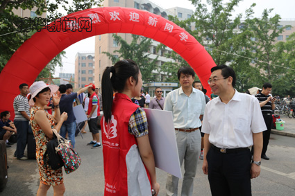 校党委副书记史宗恺也到迎新现场看望了新生和家长。党办校办、学生部、教务处、校团委、后勤等有关部门负责人也一同看望。