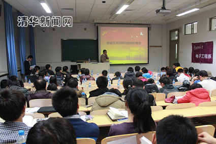 公管讲师史冬波博士为电子系做了题为“十八大之政策解读——科技全球化在中国,兼论国家创新体系建设”的报告,他结合中国当前科技发展现状,从公共政策的角度分析如何促进中国科技发展和创新。史冬波在报告后表示:“清华是一所与国家命运和前途息息相关的学府,在全校范围内进行公共管理知识的普及和交流非常有必要。我之前是物理学院的理科学生,本科阶段一直想了解人文社科类的知识和理论,但渠道有限。我认为,我们这个公管分团为有这种需要的同学提供了一个很好的平台。”