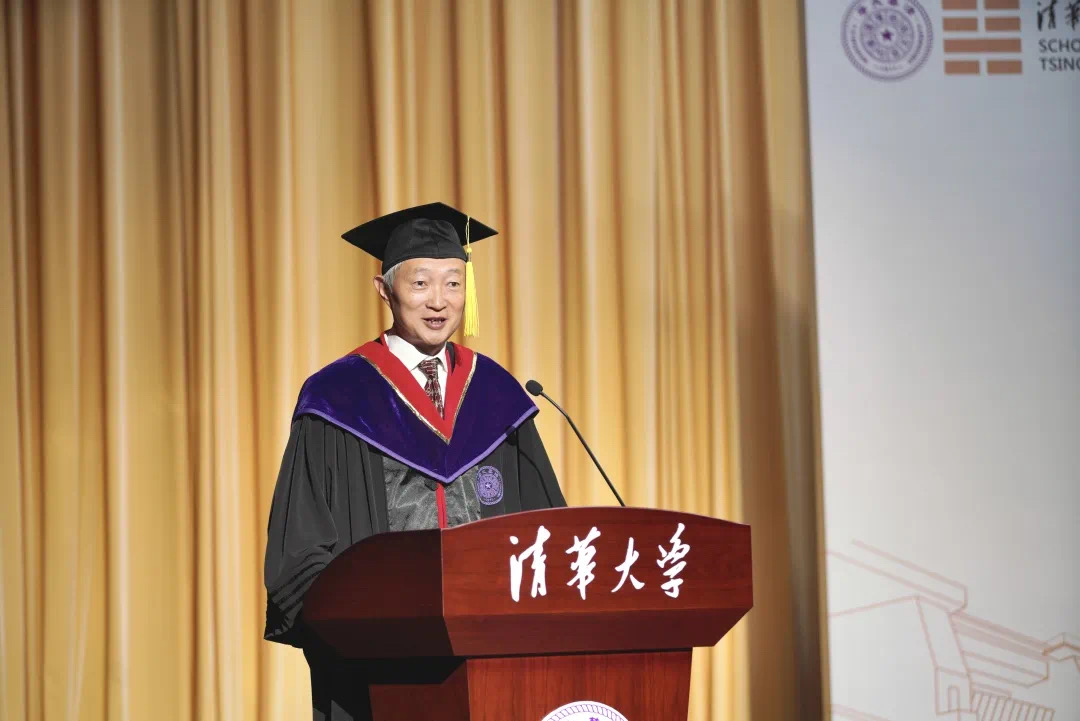 同学们,你们的学长在谈到自己的成长历程时,曾这样总结成功的经验:能吃苦、能吃亏。短短6个字,生动体现了清华校训:自强不息、厚德载物。清华的光环并不能保证你们在未来的竞争中每每胜出,但清华的精神将永远激励你们成为一个肩负使命、追求卓越的人。