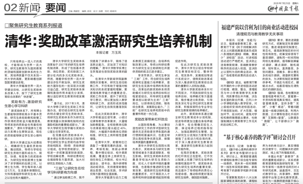 重构奖励资助体系,动员师生广泛参与。全面实施新的研究生奖助体系,完善研究生教育成本分担机制,推动院系、指导教师与学校在研究生资助方面形成合力,这成为推进研究生教育改革的代表性工作之一,《中国教育报》和教育部官网对我校研究生奖助工作成效进行了专题报道。积极营造师生广泛参与的良好氛围,自主设立研究生教育教学改革项目,支持院系推动博士生教育改革,并通过各类平台进行经验交流与分享。2020年,开展“研究生教育改革研讨月”活动,组织师生研讨会超500场次、覆盖1.2万余人次,形成总结报告46份。