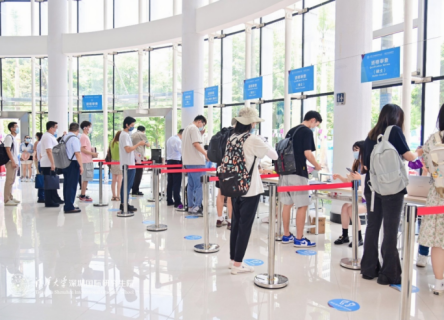 当天上午,深圳国际研究生院执行院长高虹、党委书记武晓峰、党委副书记关添、院长助理宋岩等来到报到现场看望新生和迎新工作人员,仔细询问迎新相关工作情况,与2022级新生们亲切交流,期望他们在新的征程中脚踏实地、勇攀高峰,并对辛勤忙碌的工作人员和志愿者们表示衷心感谢。