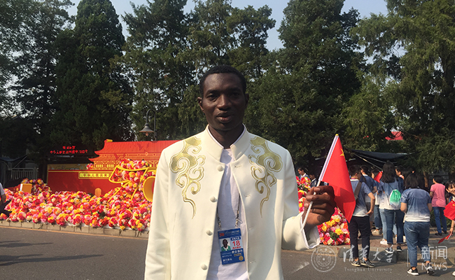 来自非洲贝宁的王吉是土木系博士二年级的学生,作为第三大队302中队的一名队员参加了国庆群众游行活动。谈到自己作为国际学生参与国庆盛典,他激动地说:“在天安门参加活动,我特别开心,也特别自豪!”。