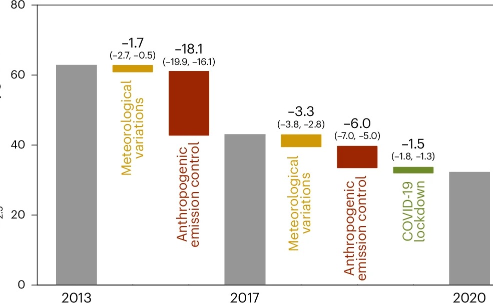2024.09环境学院耿冠楠合作揭示2013-2020年间中国清洁空气行动应对PM2.5污染成效