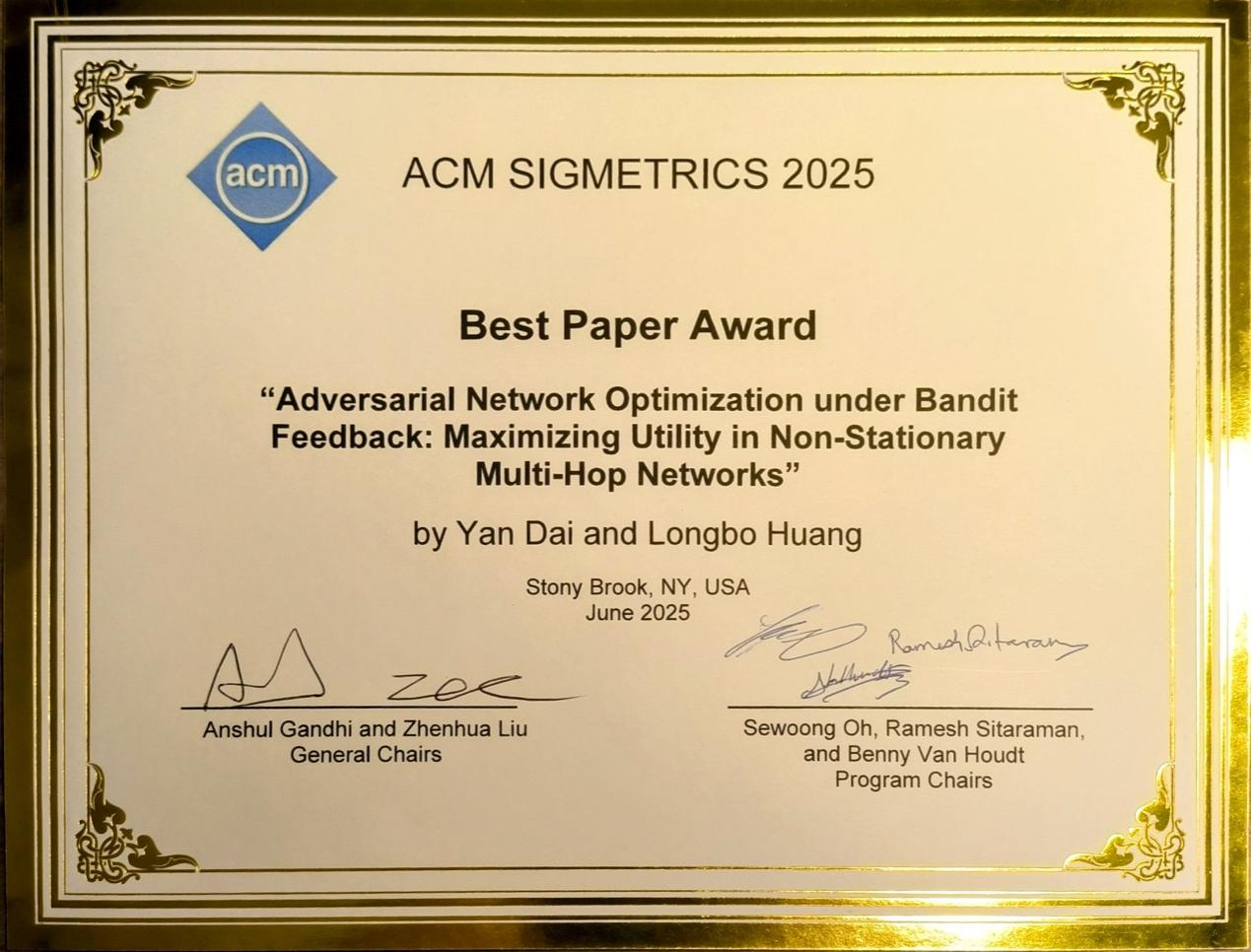 2025.06交叉信息院黄隆波团队成果获得ACM SIGMETRICS 2025最佳论文奖