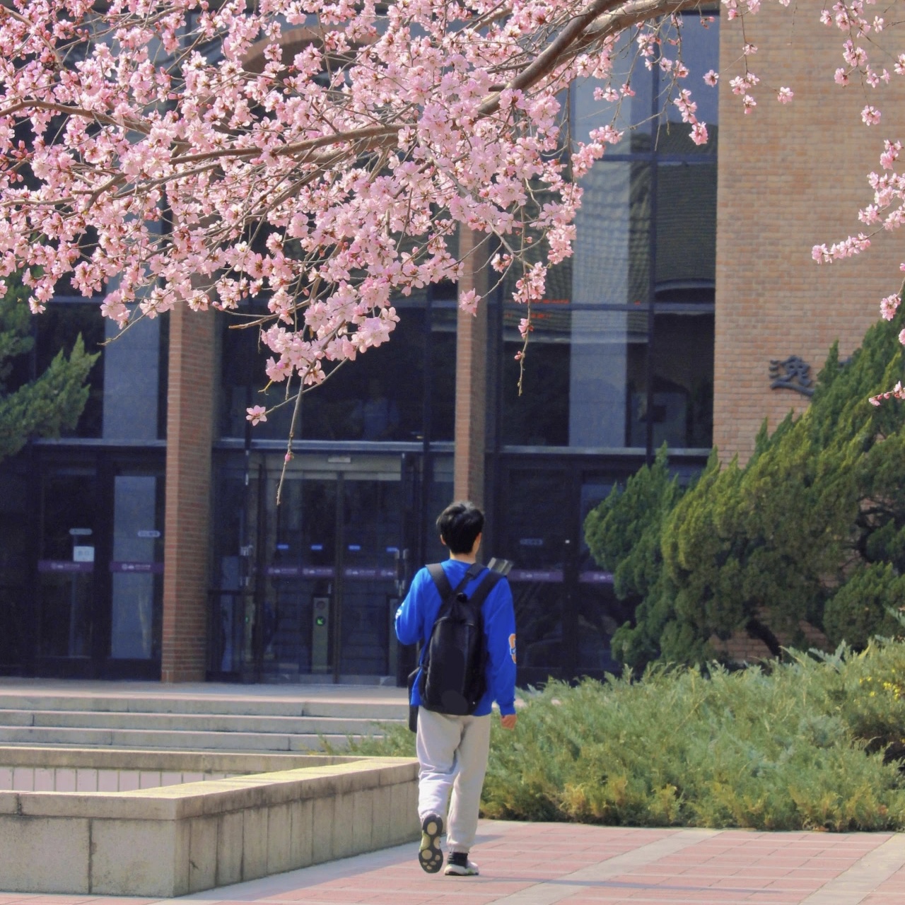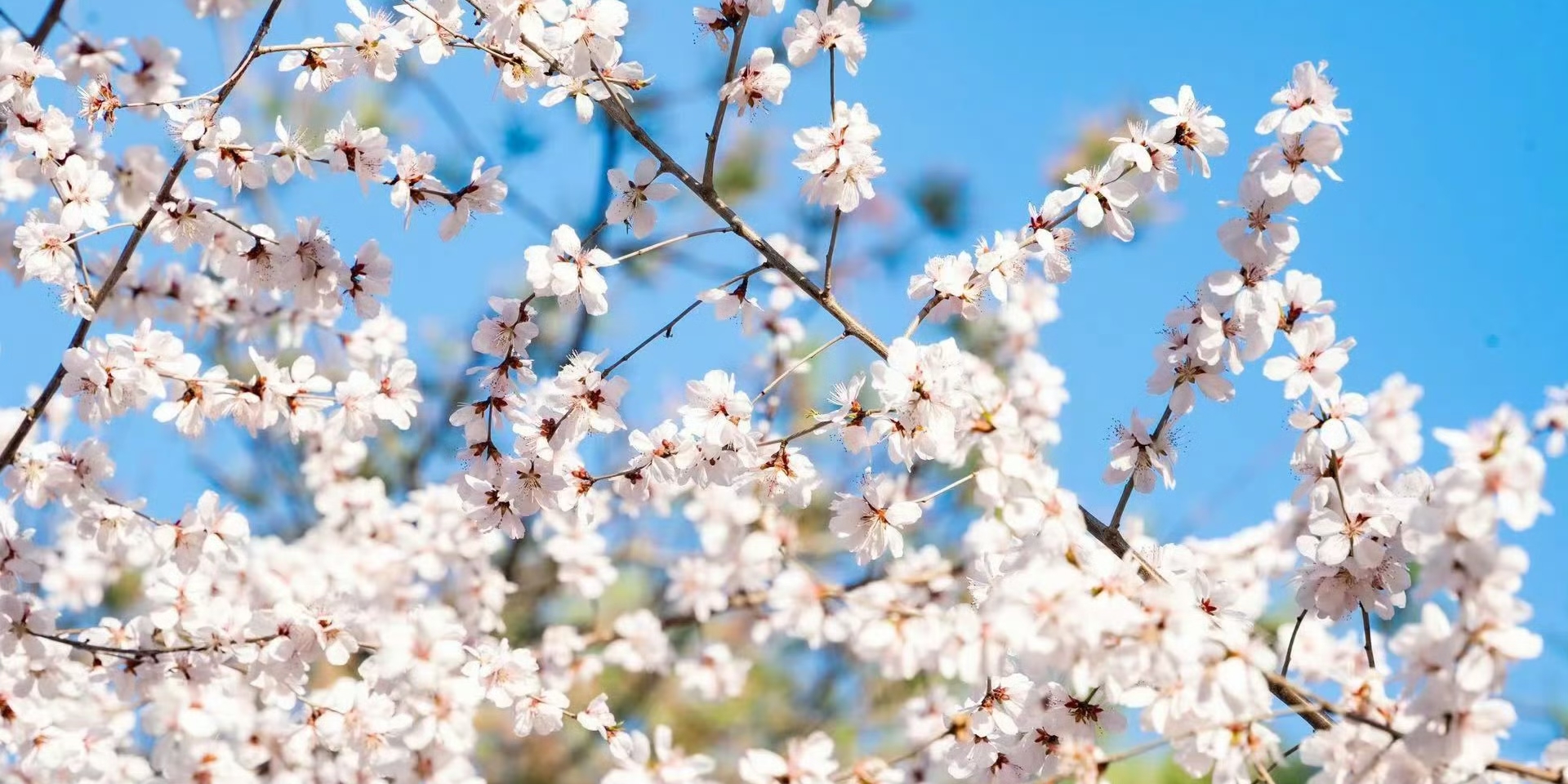 在枝头蔓延的粉白和天空一望无际的蓝,落在碧波之上,用水波将倒影绘出一幅春天的画。